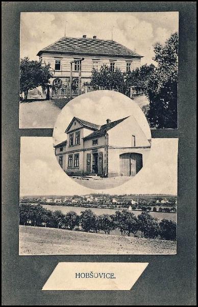 Pohlednice, údajně z roku 1917 – ve středu je dům č. 59 s obchodem, který dříve provozoval Antonín Hoblík
